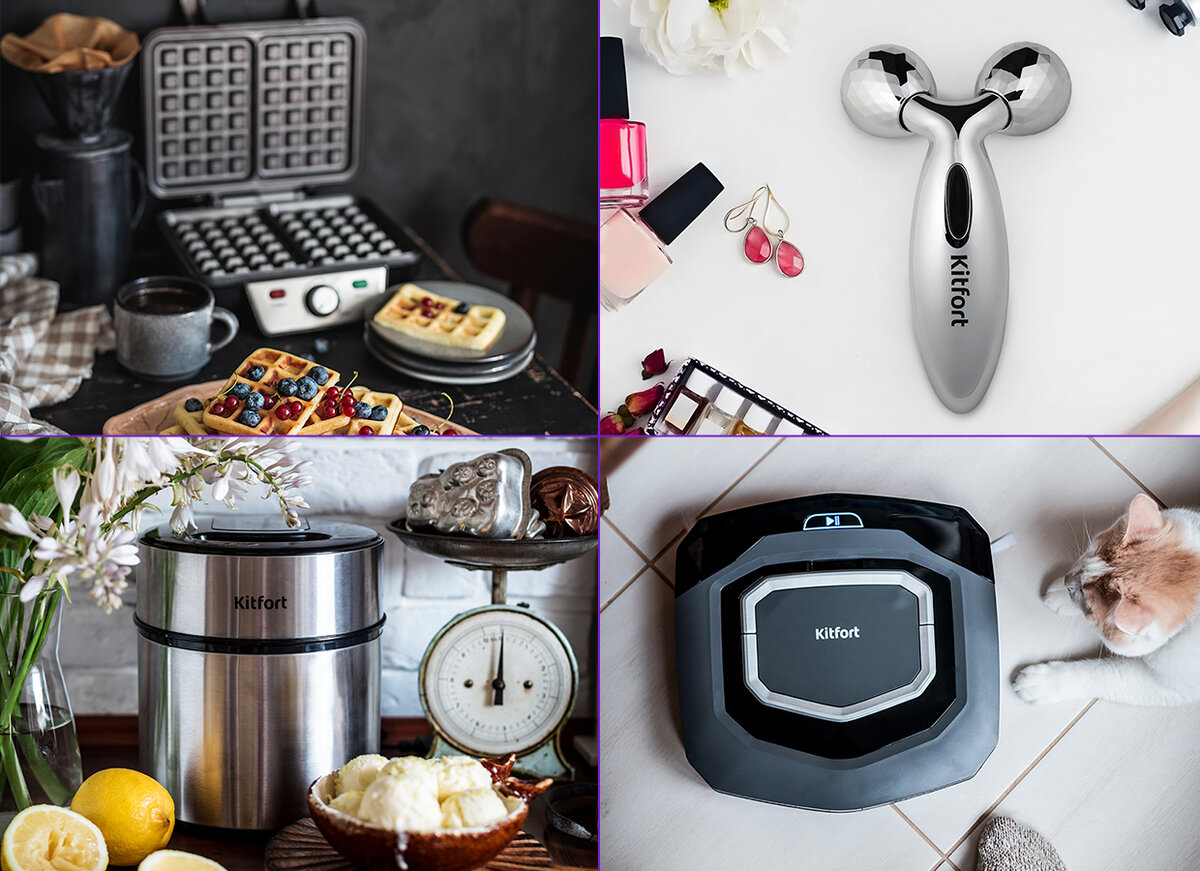Не всё же чайниками и холодильниками себя баловать! Сегодня расскажем о бытовой технике, которая возможно и не претендует на звание жизненно необходимого помощника, но точно поднимет настроение, порадует вкусненьким, сделает жизнь чуть проще, а самочувствие - лучше. Вафельница Всегда желанный подарок и заветная покупка. В чём секрет? Просто с ней можно готовить самые вкусные и ароматные бельгийские вафли. Это очень популярный десерт в кафе и кондитерских, а с вафельницей его можно легко испечь дома и дополнить шоколадной пастой с бананами или джемом со свежими ягодами, шариком мороженого с домашним вареньем или орехами с мёдом. Если вы переживаете, что часто вафли есть нельзя, так как они калорийные – вы не зря переживаете:) Но! Рецептов низкокалорийных вариантов огромное количество! Например, на твороге или кефире. К тому же можно готовить несладкие вафли под красную рыбку с авокадо или кабачковые с сыром. И процесс, и результат гарантированно поднимут настроение! Проверено десятками