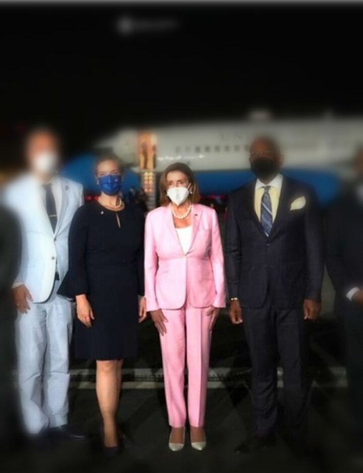 Что касается туфель на шпильках, то кругозор Нэнси Пелоси довольно ограничен, не так ли? Ультравысокий тонкий каблук искажает и без того отмеченный возрастными изменениями силуэт. Существует же множество актуальных моделей с игривым острым носиком, так необходимым в псевдо-профессиональеой деятельности данной особы. И при этом с более удобной и устойчивой формой каблучка. Да и вообще в эпоху бодипозитива, высокого уровня осознанности, гендерной свободы и доминирования спортивного шика (кроссовок, например) у нас, женщин, нет более необходимости истязать свои прекрасные ноги высокими каблуками без крайней необходимости. Ну, какая такая была у неё необходимость спускаться ночью по узкому трапу самолёта на высоченных шпильках, враскорячку?! Смотреть при её отлёте восвояси вскарабкивание на шпильках теперь уже голубого цвета, но аналогичной модели, уже не хотелось. Потому что нахлынули мысли о странной увлеченности вроде как прогрессивно-демократичной Нэнси П. токсичными гендерными уста
