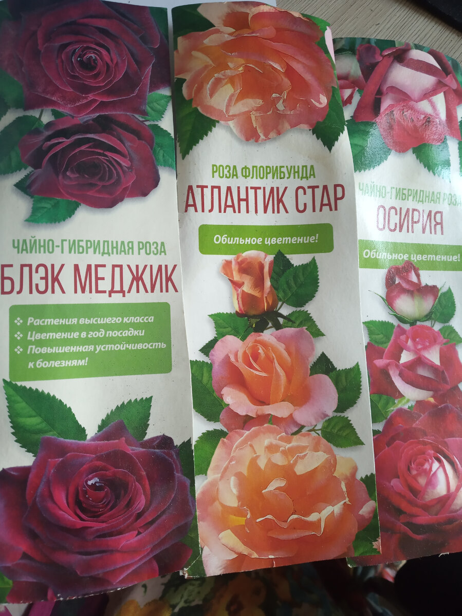 Год назад, в конце весны, я купила в магазине Пятерочка 5 саженцев роз. Они были в превосходном состоянии, с сильными побегами, блестящими листьями и по очень привлекательной цене в 189 рублей. Сразу скажу, что прижились все пять кустов. Сначала я высадила их на балконе в глубокие горшочки. Три розы прекрасно расцвели этим же летом, остальных пришлось ждать до следующего. В августе я все саженцы отвезла на дачу и там посадила на постоянное место. В этом году все розы отлично перезимовали под укрытием из укрывного материала и в положенный срок раскрыли великолепные бутоны. Но есть и минус данной покупки. Я брала по одному саженцу Блэк меджик, Аваланж, Атлантик Стар, Циркус и Осирия. Специально сохранила вырезанные с коробочек изображения и описания сортов. Что имею в итоге? Блэк меджик - совпала с описанием и фото. Аваланж тоже не подвел, шикарный сорт с крупными бутонами и обильным цветением. Циркус оказался совсем не тем, что изображено на упаковке. Это очень красивые пестрые розо