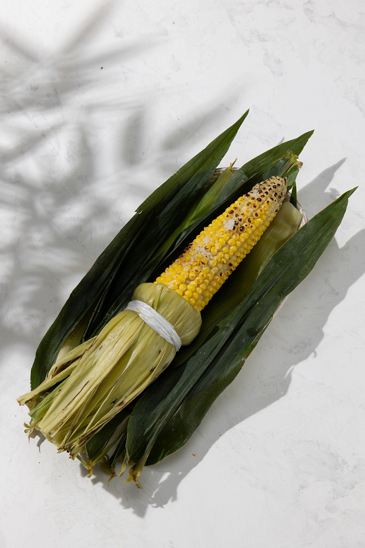 Бренд-шеф ресторанов М2 Антон Магдюк поделился рецептом приготовления и подачи кукурузы. · Берём кукурузу, отрезаем ножку и убираем ворсинки. Листья не снимаем. · На 3 литра воды - 1 чайная ложка сахара, пол чайной ложки соли, 1 лавровый лист. · Кладём кукурузу в кастрюлю так, чтобы вода ее закрывала и варим 15-20 минут. Дальше два варианта подачи: 1. Опускаем листья, как гавайскую юбку, подвязываем их, получается удобная ручка. 2. Не снимаем листья и готовим кукурузу на углях, пока угли не обгорят со всех сторон. Кукуруза в это время пропитывается дымком, после чего мы снимаем листья (их можно подвязать, как в первом варианте). Готовую кукурузу намазать фермерским сливочным маслом и посолить. Получается очень вкусно, намного вкуснее, чем просто отварить.
