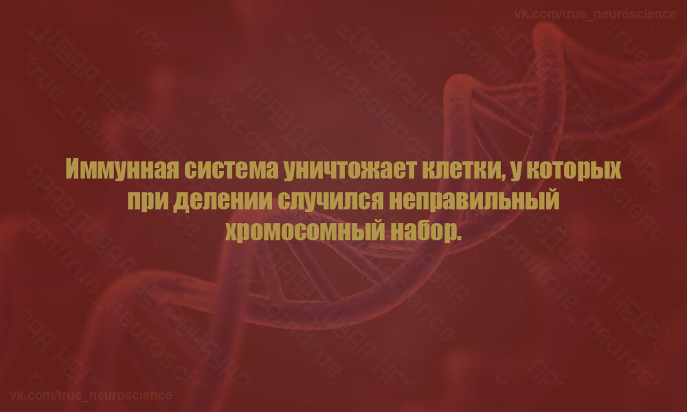 Иммунная система ликвидирует те клетки, у которых в процессе деления сформировался неправильный хромосомный набор.