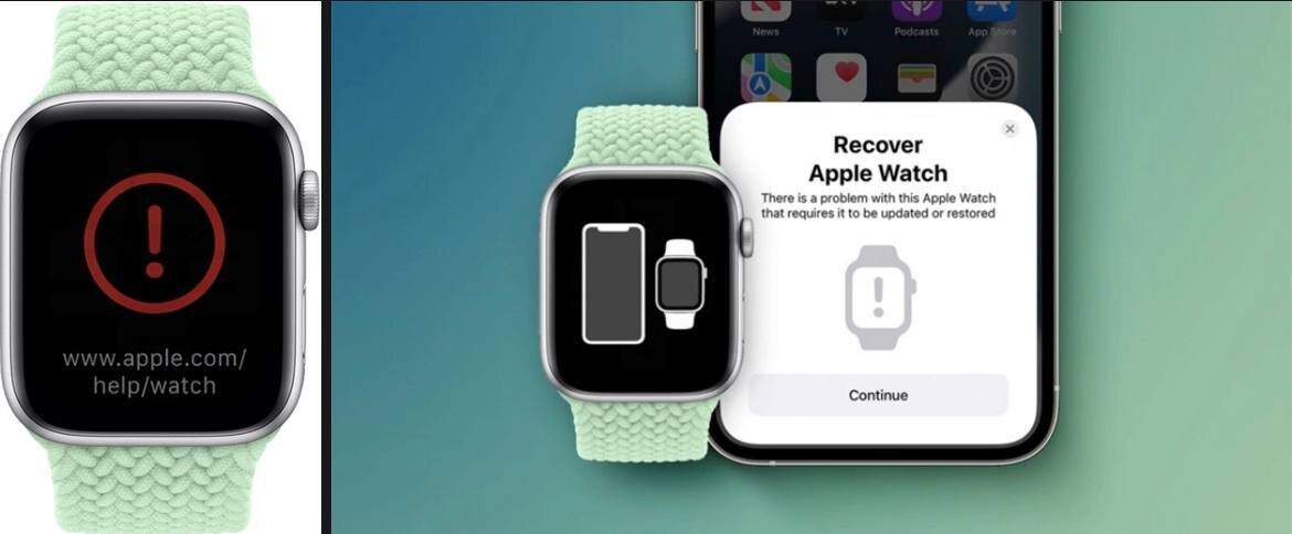 Если раньше прошивка на Apple Watch слетала, то приходилось обращаться в сервисный центр для их восстановления. Но в iOS 15.4 и WatchOS 8.5 добавили функцию восстановления прошивки Apple Watch с помощью iPhone. Теперь при появлении анимации часов со смартфоном на дисплее нужно расположить часы поближе к сопряжённому iPhone и сделать следующее: 1. Подключите iPhone к Wi-Fi, активируйте Bluetooth и разблокируйте смартфон; 2. Подключите Apple Watch к зарядному устройству; 3. Дважды нажмите на боковую кнопку (под цифровым колёсиком) на Apple Watch; 4. Следуйте инструкциям, которые появятся на iPhone. Если что-то пошло не так и на дисплее часов появился красный восклицательный знак нужно дважды нажать на боковую кнопку и выполнить все те же шаги указанные выше.