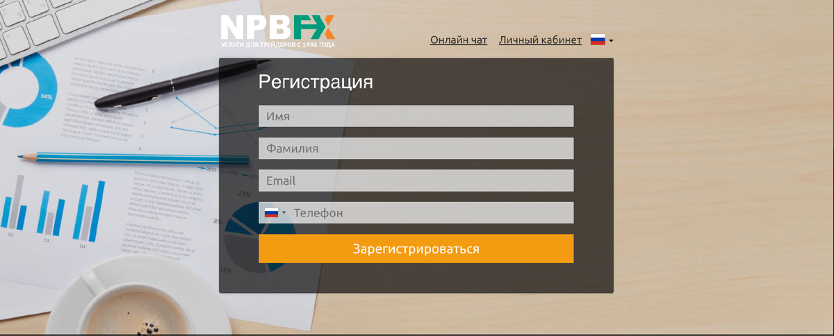 Разработчики данного брокера сделали всё возможное, чтобы упростить использование брокерского сервиса. Коснулось это и регистрационного процесса. Он проходит буквально в несколько кликов. Первый этап. Личные данные Начинается регистрация NPBFX по этой ссылке (https://nmofficialru.com/a20dy1k50ggx). Перед вами откроется окно с классической веб-формой. В ней вы указываете, имя и фамилию, электронную почту, номер мобильного телефона, к которому будет привязан ваш аккаунт. После этого вам придёт SMS с кодом подтверждения и сообщение с кодом на вашу почту. Второй этап. Верификация аккаунта Переходим в личный кабинет и первым, что мы должны сделать это начать процесс верификации (подтверждения) персональных данных для доступа к полному функционалу и возможности банковских и карточных платежей. Набор документов стандартный: удостоверение личности и подтверждение адреса. Еще раз напоминаем, желательно чтобы данные в документах и на этапе регистрации совпадали! Проходим по ссылке "Верификация"