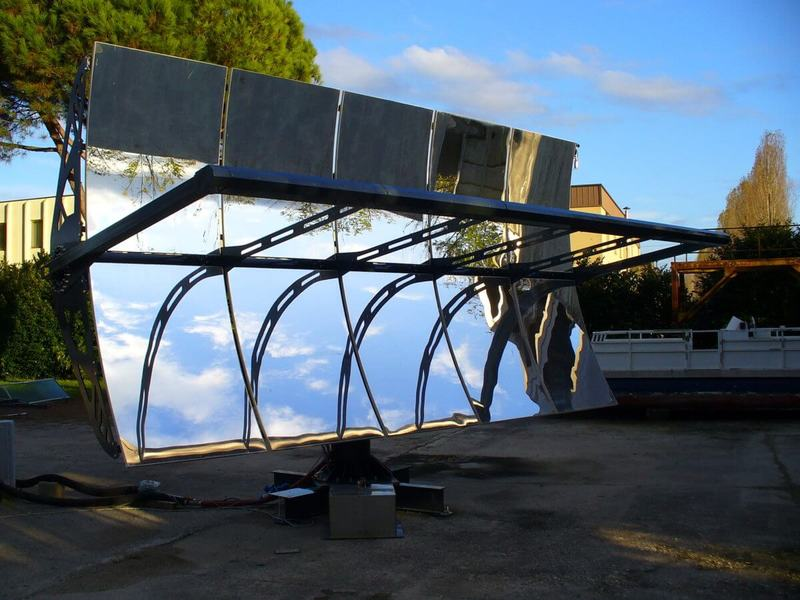 Последняя система состоит из четырех параболических зеркал, которые концентрируют солнечное излучение на линейном приемнике. Она включает в себя два фотоэлектрических тепловых модуля, каждый длиной 1,2 метра.