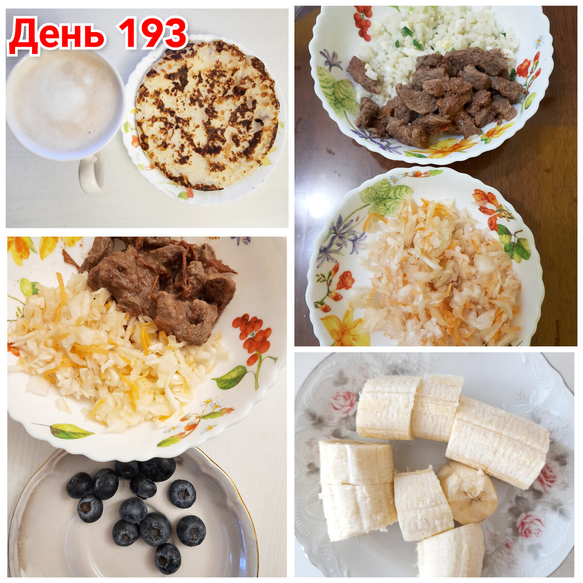 #Завтрак – кофе со сливками и сахаром 15г. #Сырнаялепешка с луком и карпаччо. 1 яйцо+100 мл кефира+50г муки+соль, мешаем. Тру 50г сыра, режу лук, добавляю 20г карпаччо. Все вместе смешиваю. На сковороду без масла, с каждой стороны до румяной корочки. #Обед – рис с луком и яйцом, тушеная говядина (рецепт в дне 192) и маринованная капуста (рецепт в дне 191). #Десерт – банан. #Ужин – тушеная говядина (рецепт в дне 192) и квашенная капуста – рецепт в дне 190. И немного голубики, в этот раз попалась очень вкусная ягода! Я только теперь поняла ее прелесть. Она действительно вкусная, сочная, сладкая, как черника, только более насыщенный вкус без кислинки. 🔥 Подписывайтесь – это лучшая благодарность за мой труд!