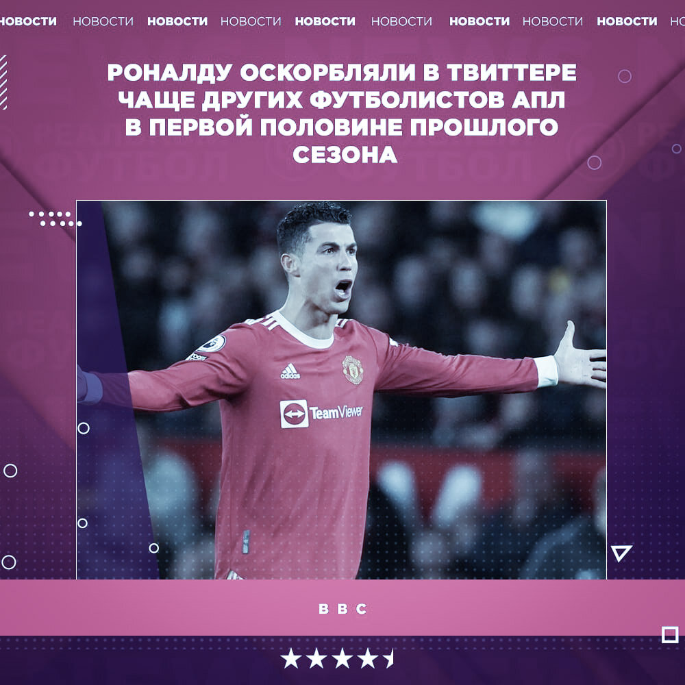 📝 Исследователи проанализировали 2,3 млн твитов за первые пять месяцев сезона-2021/22. 📈 Почти 60 тысяч из них были оскорбительными, 8% были направлены на расу или пол. 📊 Роналду получил 12 520 твитов с оскорблениями, больше всех. Это 2,2% от суммарного числа упоминаний португальца в твиттере. На втором месте Харри Магуайр (8 954), третий – Маркус Рэшфорд (2 557). В топ-10 присутствует восемь футболистов «Манчестер Юнайтед».