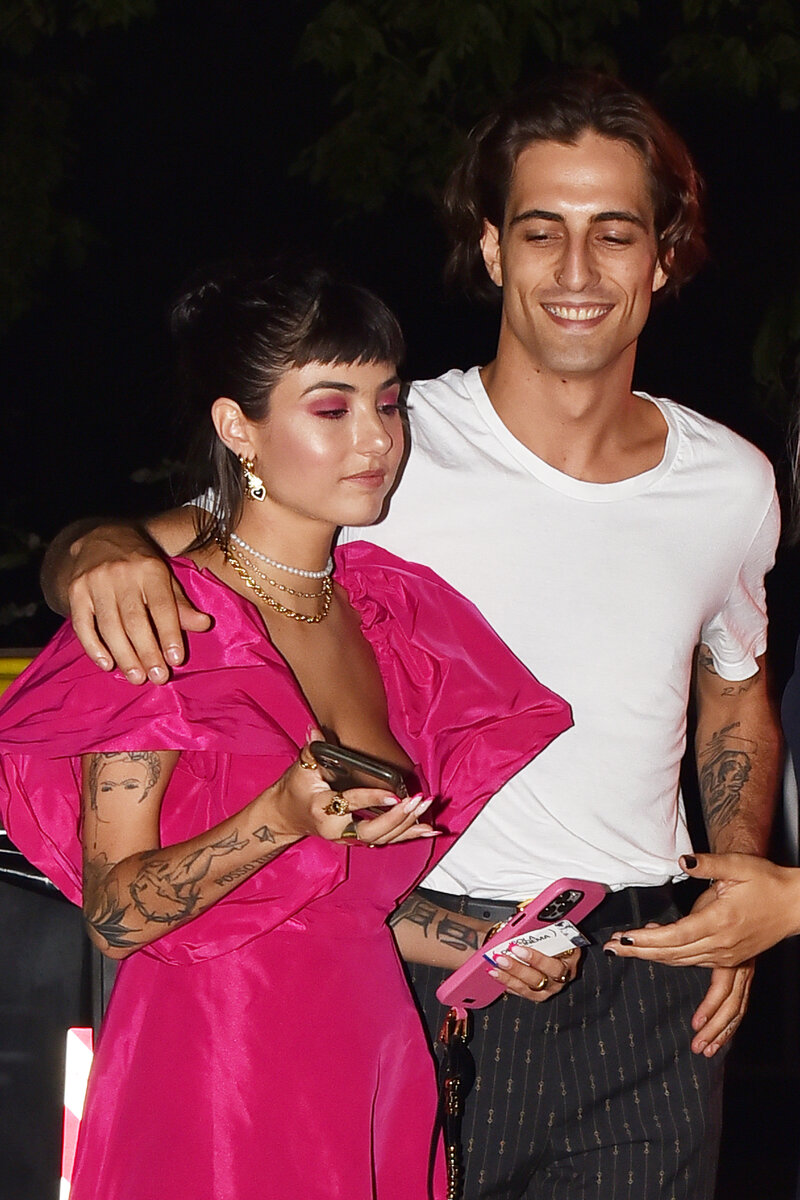 В конце июля солист группы Maneskin нашел время в своем плотном концертном графике, чтобы прилететь в Рим и поддержать свою возлюбленную, Джоржию Солери, на презентации ее сборника стихотворений. Для этого публичного выхода девушка выбрала ярко-розовое платье в пол с рукавами-фонариками, дополнив его сумкой в тон, изысканными золотыми украшениями и ниткой жемчуга. Музыкант же предстал в более расслабленном образе: белой футболке и темных брюках. Это нетипичный аутфит для Дамиано Давида, которого поклонники привыкли видеть в гораздо более экстравагантных нарядах. Однако в тот день он и не должен был быть «главной звездой вечера». Поэтому, очевидно, решил не привлекать к себе слишком много внимания, позволив Джорджии Солери блистать на первом плане. Папарацци также удалось сделать несколько кадров за кулисами мероприятия. На этих фотографиях Дамиано Давид и Джорджия Солери непринужденно общаются со своими друзьями, а затем трогательно обнимаются перед тем, как сесть в машину и отправитьс