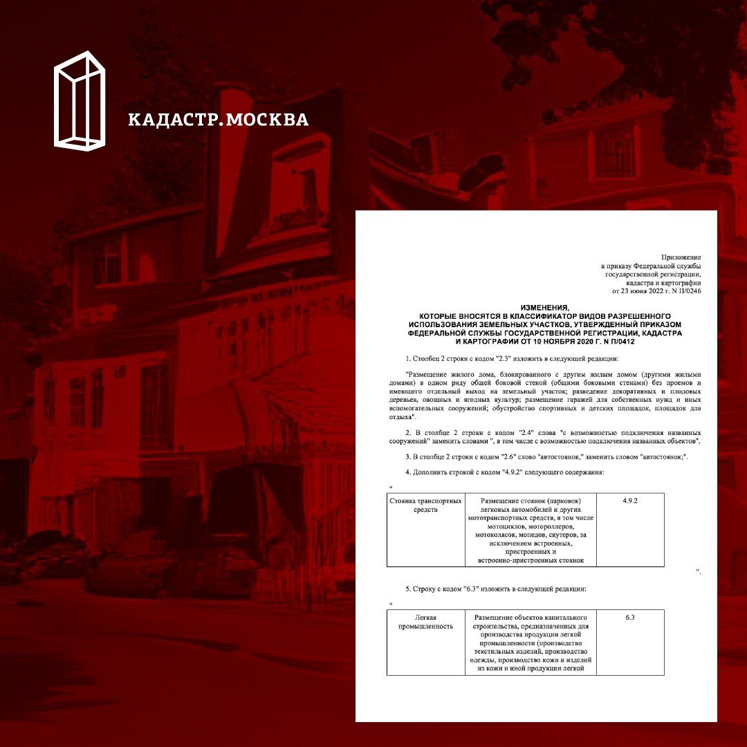 Приказ Росреестра №П/0246 от 23.06.2022 «О внесении изменений в классификатор видов разрешенного использования земельных участков...» 476-ФЗ от 30.12.2021 ввел в Градостроительный кодекс немного неудачное определение «дома блокированной застройки» — это «жилой дом, блокированный с другим жилым домом (другими жилыми домами) в одном ряду общей боковой стеной (общими боковыми стенами) без проемов и имеющий отдельный выход на земельный участок». Проблема здесь в том, что ст.1 «жилой дом» — это «объект индивидуального жилищного строительства». Из-за этого может возникнуть предположение, что для его возведения не требуется разрешение на строительство, однако это не так, что подтверждается материалами совещания Росреестра от 25.05.2022. В классификаторе видов разрешенного использования земельных участков (приказ Росреестра №П/0412 от 10.11.2020) до сих пор сохранялось ранее установленные термин и определение. Теперь же они синхронизированы с Градостроительным кодексом. Заметим, что было бы не