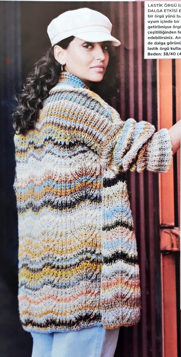 Кардиган с интересным полупатентным узором с эффектом волн. Перевод описания и схемы из журнала Diana-örgü 1/22. Размеры: 42/46 (48) 50/52