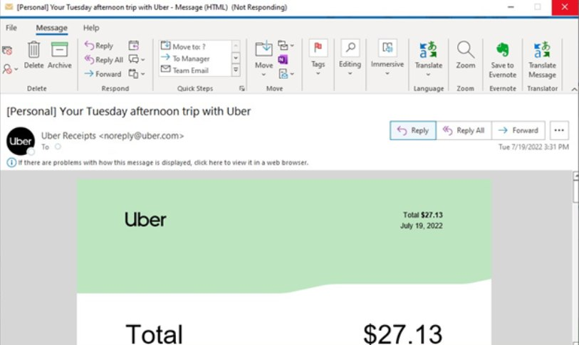 Microsoft предупредила пользователей, что в курсе проблемы, когда почтовый клиент Outlook зависает или аварийно завершает работу при открытии или чтении электронных писем с некоторыми таблицами, например, как в рассылке с квитанциями по поездкам от Uber.