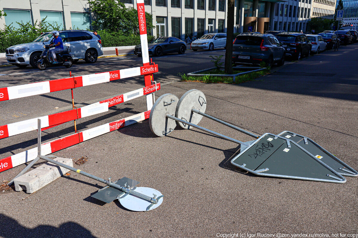 Есть в мире страны, которые ассоциируются с абсолютным счастьем и спокойствием. Швейцария – одна из них. Кажется, что здесь ничего плохого не может произойти в принципе, а улицы городов должны быть похожи на райские кварталы, всюду усаженные цветами. Но нет, на солнце тоже есть пятна. В Швейцарии тоже живут люди, а потому бывает всякое: и мусор на улицах, и плохие дороги, и просто ветхость и запустение. Например, вот эти поваленные дорожные знаки в центре Цюриха. Кому и зачем понадобилось их валять — загадка. Стояли себе спокойно бы и стояли, но сейчас они не менее спокойно лежат. Я понимаю, что знаки временные, но вот так валяться им тоже не дело. Или вот такая заправка все в том же Цюрихе. Несмотря на звучное название "NASA", выглядит как будто бензоколонка двадцатилетней давности. И я бы еще понял, если бы подобные АЗС были где-то глубоко в провинции, но здесь центр большого города. Кстати, о провинции: туда мы отправимся посмотреть на швейцарские дороги... Дороги эти иногда бываю