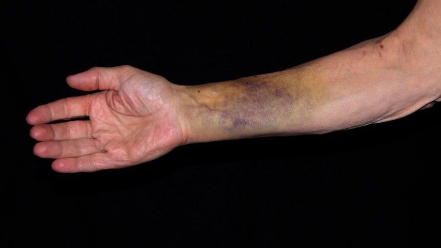 При появлении беспричинных синяков следует незамедлительно обратиться за помощью к врачу. Фото: www.globallookpress.com / Siegra Asmoel За внезапным появлением синяков могут стоять серьезные заболевания, связанные со свертываемостью крови, заболеваниями печени и онкологическими болезнями. Об этом рассказала врач общей практики, врач-эксперт лаборатории «Гемотест» Елена Горина. По ее словам, при плохой свертываемости крови даже при незначительном ударе будет образовываться обширный синяк. Подобная патология может быть вызвана проблемами с печенью, а также онкологией. «При онкологических заболеваниях, в том числе при раке крови, из-за падения уровня тромбоцитов также часто появляются патологические синяки. Кровоизлияния при таких недугах могут стать первыми симптомами, позволяющими выявить и остановить болезнь», — говорит Горина. Кроме того, причинами патологических синяков могут быть ломкость сосудов и дефицит витаминов. «Повышенная ломкость стенок сосудов появляется из-за дефицита вита