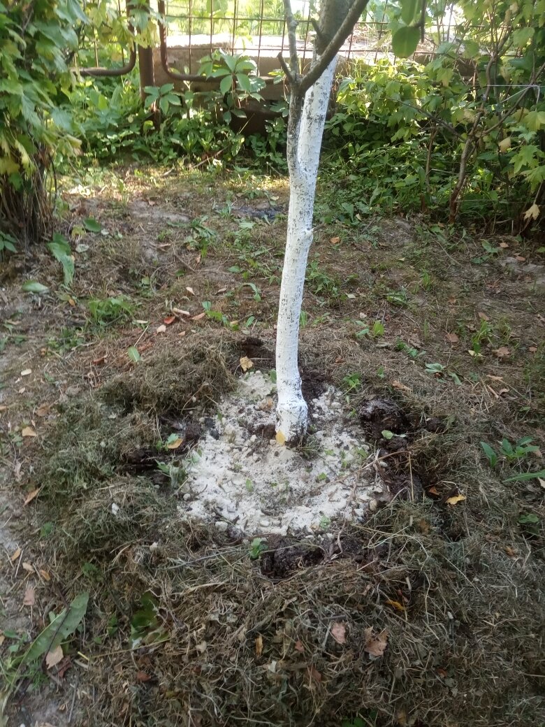 Во-первых, если у вас деревья под зелёным паром, необходимо скосить тут траву. Мне нравится, когда под пристальными кругами не растёт трава. Поэтому здесь удобно рыхлить почву.