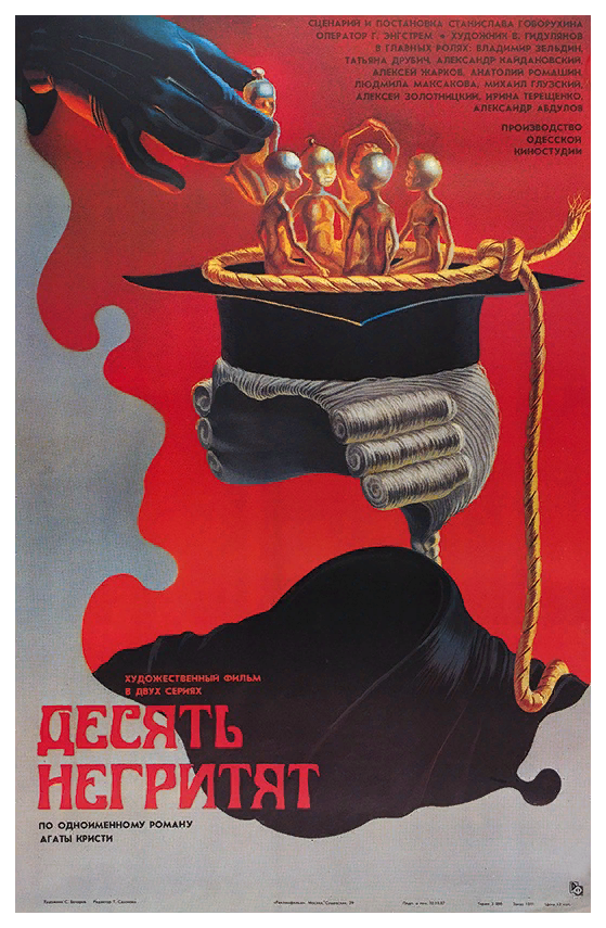 "Desjat negritjat" - советский фильм в переводе на английский "И никого не стало"(«And then there were none») по роману Агаты Кристи, где герои умирают в соответствии с детской считалочкой про... солдатиков.