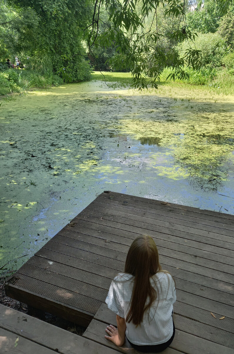 Эту фотографию можно было бы использовать в игре "Угадай город по фото". И я уверена, что никто бы не догадался, что это живописное болотце расположено в центре Москвы, среди каменных джунглей. Расположено оно в Аптекарском огороде. Вход в Аптекарский огород платный. В выходной день стоимость билета для взрослого составила - 400 рублей, для школьника - 250. Время нахождение не ограничено. Аптекарский огород - это самый старый ботанический сад в России. Основан он был еще Петром I. Здесь собрано огромное количество разнообразных растений. По тенистым тропинка очень приятно прогуливаться в знойный летний день. Прямо на улице в небольшом прудике можно увидеть черепашек. Здесь их очень много. Очень понравились оранжереи. Настоящие тропики с огромными пальмами и другими тропическими растениями. Нам повезло полюбоваться цветением лилий. Здесь они разные, но все очень красивые. Еще в Аптекарском огороде можно полюбоваться на рыбок. Коллекция не большая, но тоже привлекла наше внимани