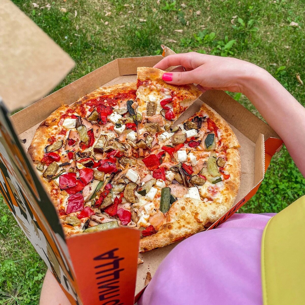 Пастрами из индейки, овощи-гриль, кубики брынзы, моцарелла и томатный соус.Новинка уже на нашем сайте и в мобильном приложении по ссылке.