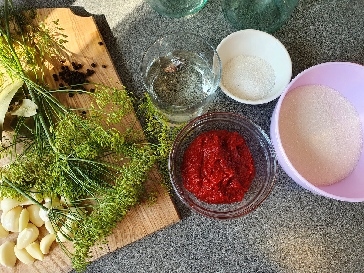 Чем хорош рецепт, тем что можно переработать переросшие огурцы. Рецепт маринованных огурцов в томатном соусе. Очень вкусная необычная закуска, готовить очень просто, да и без лишних заморочек. На вкус как маринованные огурцы, хрустящие , пряные, но немного необычные за счёт томатного маринада. Некоторые хозяйки такие огурчики пускают в рассольник. Думаю это будет вкусно .👍 Ингредиенты на 5 литровых банок. Но зависит от степени набивания огурцами банку. Если набъете плотно, то маринада хватит на 5 банок по 1 л. ИНГРЕДИЕНТЫ и ПРИГОТОВЛЕНИЕ На дно банки уложить : Огурцы порезать вдоль и уложить в банки. МАРИНАД В кастрюлю наливаем воду, кладем туда томатную пасту (не кетчуп, и не томаты протертые, а именно пасту ) Отправляем соль, сахар. Ставим на плиту , доводим до кипения. В самом конце как закипит , выливаем уксус. Банки у меня уже стерилизованные. Отдельно кипятятся крышки. Разливаем рассол по банкам до самых краев. Закрываем крышкой. Переворачиваем, укутываем. А вы з