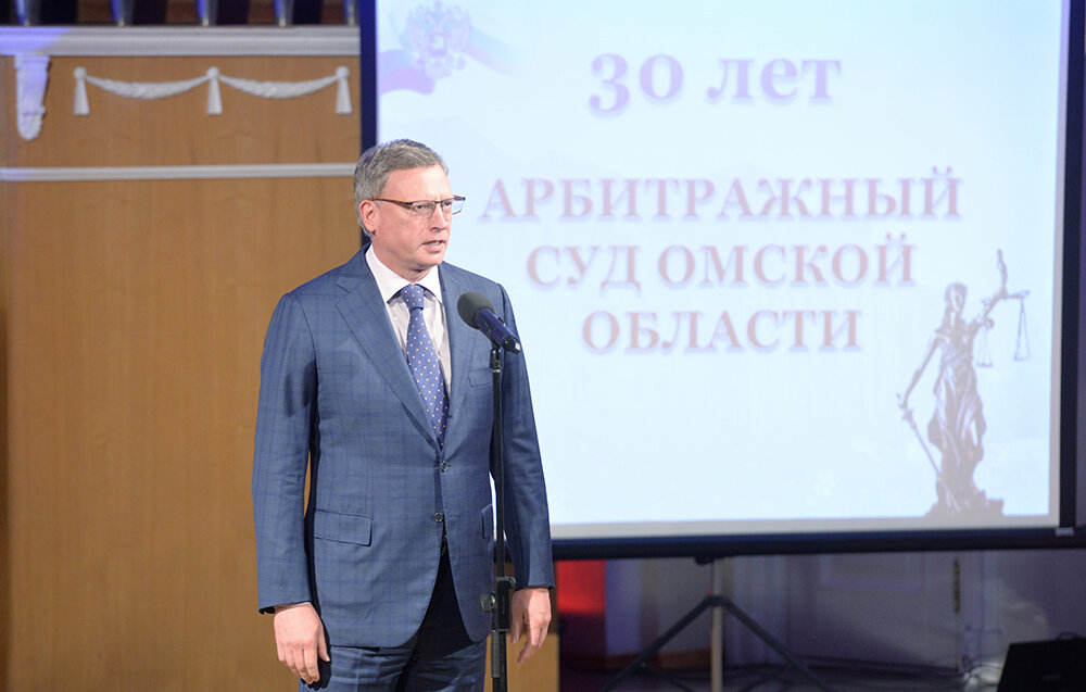 Губернатор принял участие в торжествах в честь 30-летия со дня образования Арбитражного суда Омской области. На мероприятие собрались почётные гости, в их числе представители судейского сообщества, регионального Правительства, Законодательного Собрания, мэрии Омска и Омского городского совета, руководители органов прокурорского надзора, следственных и правоохранительных структур. Александр Бурков поблагодарил всех, кто в разное время вносил свой вклад в становление судебно-арбитражной системы региона и сегодня находится на страже экономических интересов граждан и организаций. «Становление арбитражной системы проходило в один из самых непростых периодов в истории нашей страны. Следствием кардинальной трансформации в экономики стала острая необходимость в защите прав и свобод в этой сфере. Для системы правосудия это был настоящий вызов. Несмотря на все испытания 90-х, с ним удалось справиться достойно. Мы это видим, в том числе и на примере работы Арбитражного суда нашей области. На про