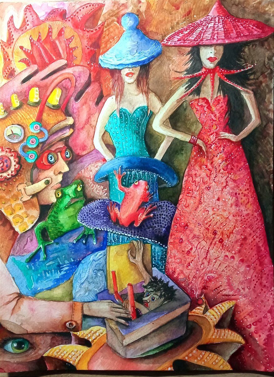 24×32 акварель.встреча диггера с видениями портала.