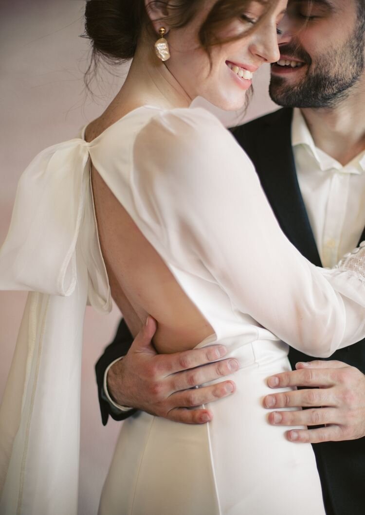 Наряд невесты в европейском стиле элегантный и утончённый. Естественный макияж, здоровая и отдохнувшая кожа - вот основа для идеального образа. Волосы могут быть собраны в слегка небрежный пучок, с несколькими выбивающимися прядями.
