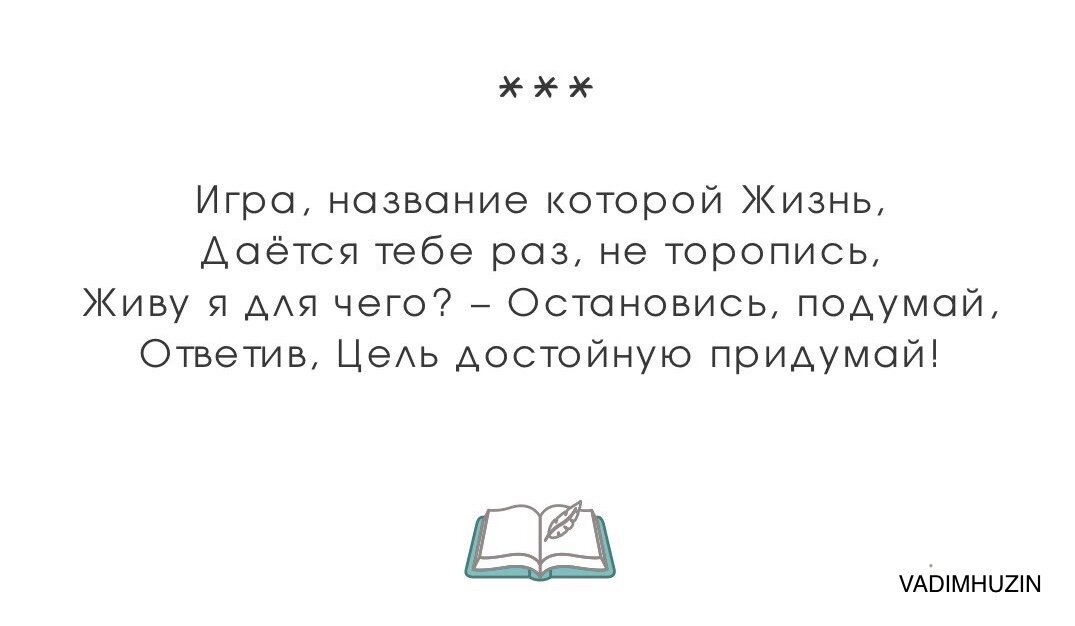 ...Все это дает право Выбирать! Важно помнить лишь один факт – здесь в этой жизни ты точно один раз, поэтому используй этот шанс. И на 100% поработай над материалом этой книги!!! Постановка настоящих (!) целей – вопрос сложный и небыстрый! Главная его сложность – понять себя и уделить достаточно времени для обдумывания вопроса «Что же я хочу на самом деле?» в противовес тому, чтобы быстро и бесполезно (!) взять чужую цель. Цель должна быть вдохновляющей! Это фраза пустой звук для всех, кто ставит цели. Цель должна вас цеплять! Это и так понятно. Но как же найти эту вдохновляющую цель? Повторюсь. Процесс не быстрый. Хочешь быстро? Возьми цели из ТВ, цели Системы, цели других людей. Преимущество такого подхода – эффективность, скорость, быстрота выбора цели. Итог – неинтересное движение к самой цели, разочарование при достижении результата. 😔 При таком подходе особо печальный итог при постановке цели с датой достижения, близкой к концу жизни, когда приходит