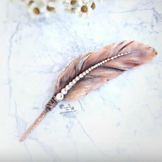Казалось бы, простое перышко, сколько их валяется под ногами... Но посмотрите как оно преображается в умелых руках гальваниста! Теперь это настоящее перо жар-птицы, исполняющее желание! Такое можно преподнести в подарок и дорогой подруге и уважаемой коллеге.