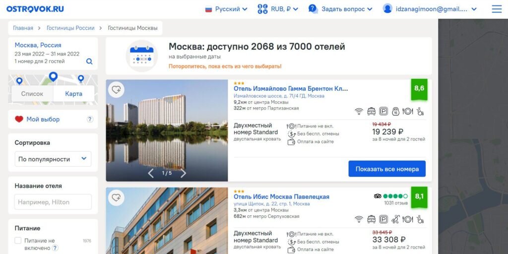 Этот сервис существует давно и уже успел себя хорошо зарекомендовать среди отечественных пользователей. Он интуитивно и функционально похож на Букинг, поэтому разобраться в его интерфейсе будет очень легко. Удобные фильтры и система поиска, подробная информация про объекты размещения и возможность посмотреть все категории номеров, сравнив цены на них, что очень удобно. Сделать бронь можно прямо на сайте, никуда с него не переходя. Еще здесь интегрированы отзывы с Trip Advisor, так что самые педантичные смогут подробно изучить варианты, опираясь на них.