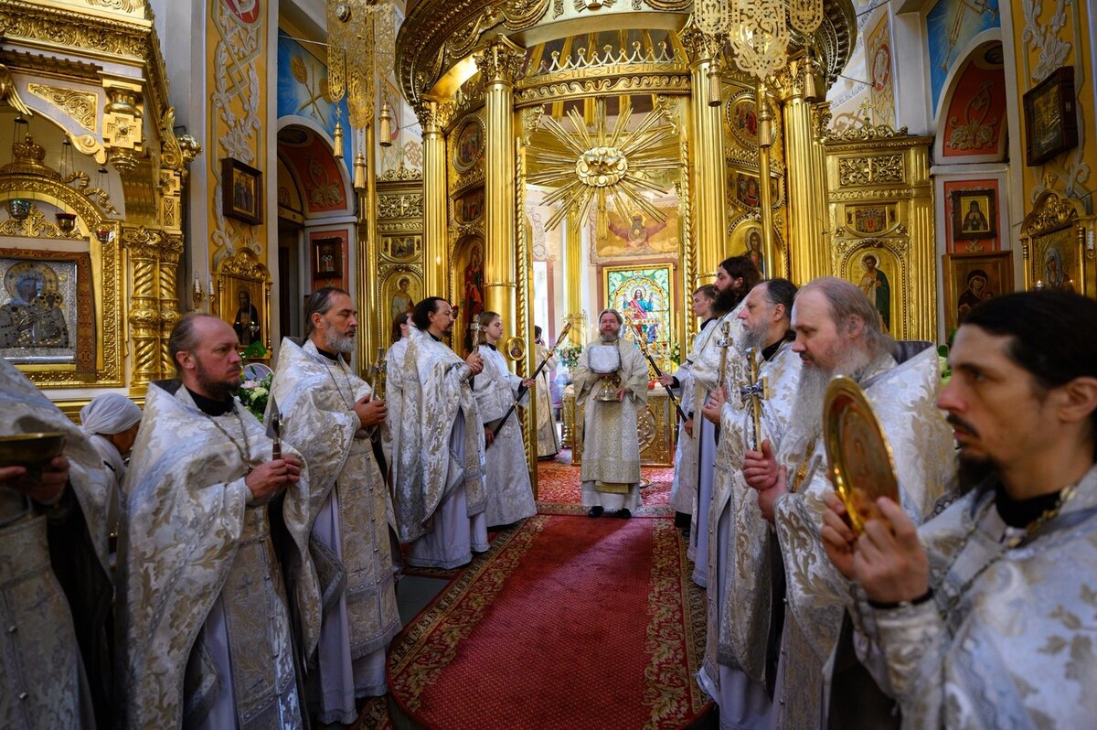 На сугубой ектение митрополит Тихон вознес молитву о восстановлении мира. По запричастном стихе Владыка обратился ко всем собравшимся с Архипастырским словом.