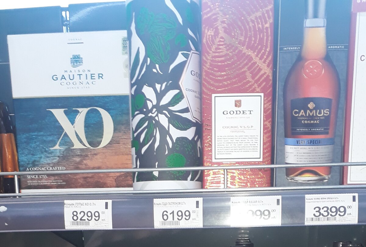 Скидки на коньяк и бренди в супермаркете Перекрёсток Московской области. Godet XO - французский коньяк с длительной выдержкой в дубовых бочках. Всё не удаётся пока никак попробовать. 6199 рублей за 0,7 литра в подарочном тубусе. Это без акции, по белому ценнику. Если сделают скидку, будет интересно. В прошлом году он стоил минимум пять тысяч... ...с копейками. В сети Винлаб он стоит почти восемь тысяч рублей. Godet Antarctica - бленд(смесь) 99% коньяка и 1% бренди. Для чего это сделано, непонятно. Теперь этот напиток не может называться коньяком. Лет 10 назад в магазинах Duty Free в аэропортах, он продавался под названием коньяк, если не путаю. Особенность напитка в том, что в отличие от классического коньяка, он прозрачен, как слеза). Такая вот фишка коньячного дома Godet. Godet VS - самая простая версия от данного производителя. Выдержка в бочках от 2 лет. 2899 рублей за 0,7 литра по регулярной цене. Раньше, вроде бы, регулярная цена на него была 2700-3000 рублей. По акциям доходи