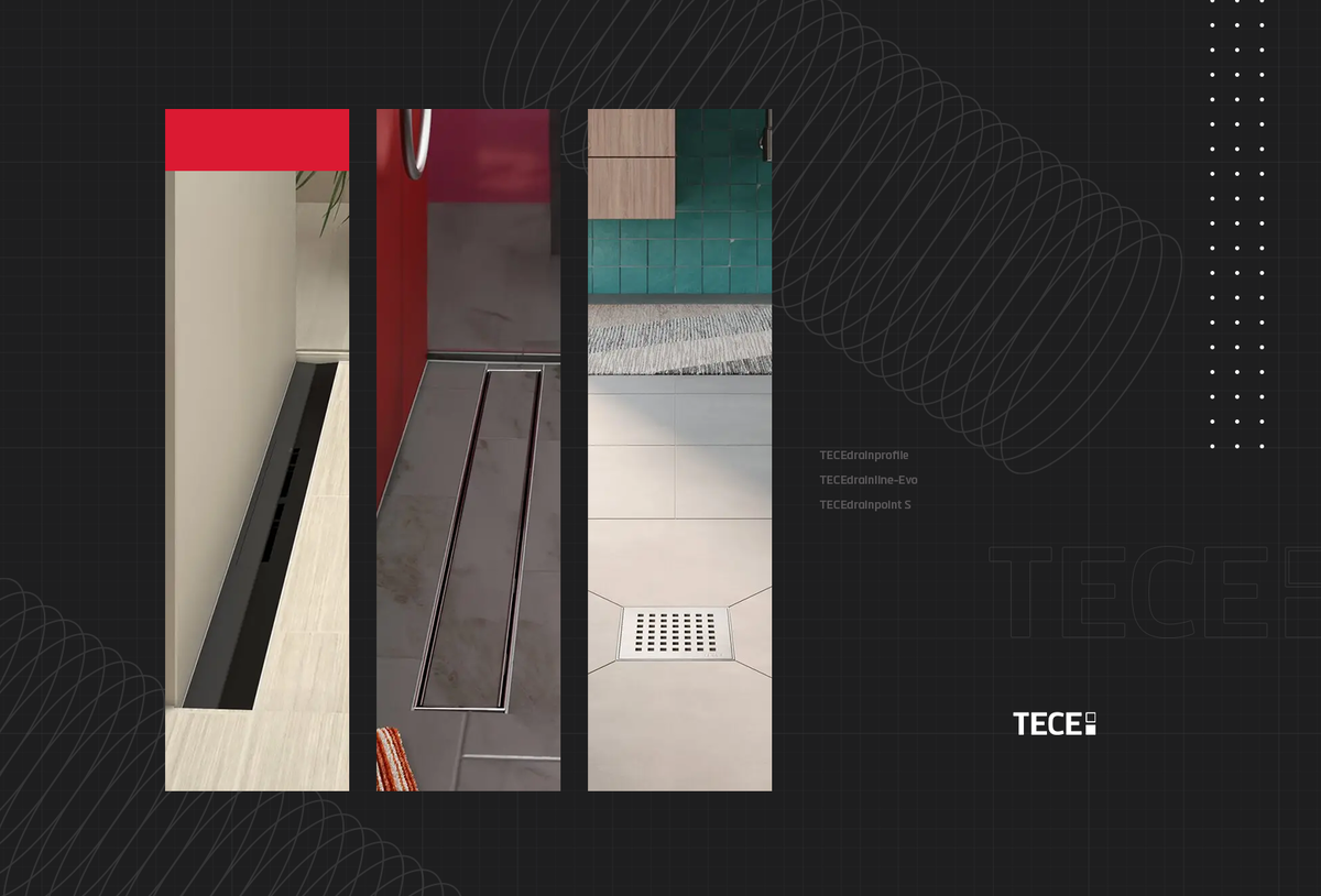 Специалисты TECE постоянно находятся в поиске способов усовершенствовать продукцию. Мы хотим, чтобы установка была еще проще, но при этом сохранилось качество, безопасность и удобство использования. Поэтому недавно мы представили несколько дополнений в линейке дренажных решений для душевых зон. ● TECEdrainprofile У душевого профиля появился вертикальный слив. Его можно применять в нескольких случаях: ● Когда трубопровод должен быть проложен вертикально через потолок. ● При установке душевого профиля на первом этаже здания, в подвале или подсобном помещении. ● В зданиях с низкой строительной высотой стяжки. Строительная высота такого душевого профиля ― 47 миллиметров, это самое плоское решение в нашем ассортименте. Высота гидравлического затвора ― 50 мм, пропускная способность ― > 0,8 л/сек. В комплекте TECEdrainprofile также будет гидроизоляционная уплотнительная манжета Seal System, защита от пыли и грязи на время строительства, звукоизоляционная лента и сифон. ● TECEdrainline-Evo для