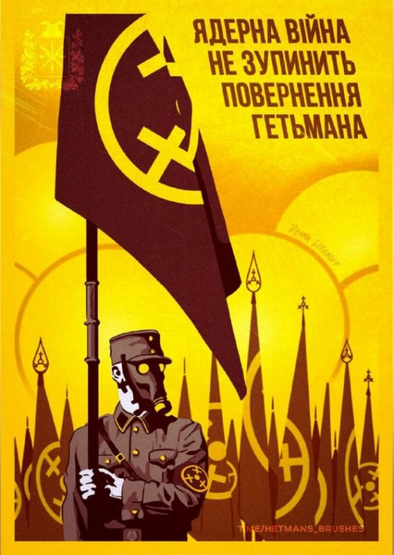 Плакат украинских националистов в поддержку «Нуклеархии» (ядерной войны на Украине). Текст гласит: «Ядерная война не остановит возвращения гетмана».