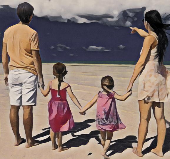 - Фуууу-у, - нервно улыбаясь, выдохнула Юля, - с этими детками чокнешься. Давай руку, Надя. Полина, иди с папой. Итак, ну что, идём в магазин, а потом в кафе? Только переоденемся в красивое, как вам план?