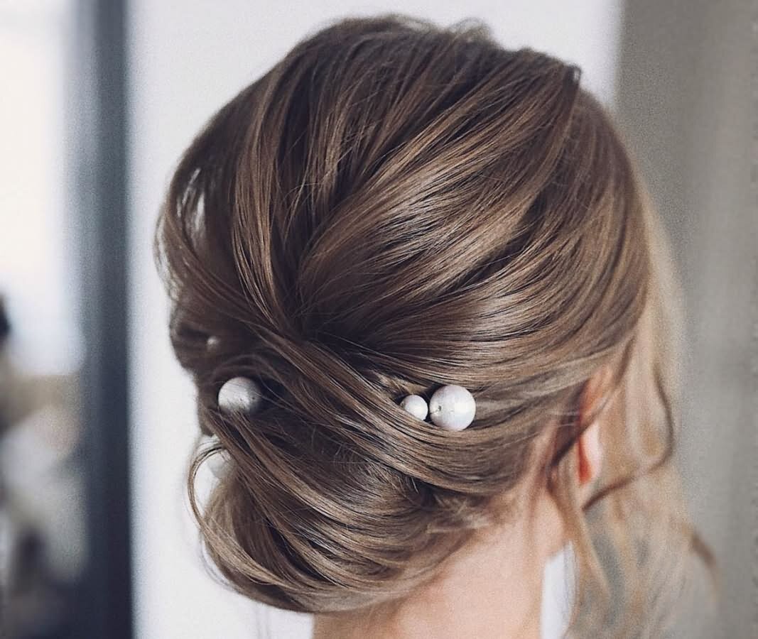 В случае праздника, лучше добавить к прическе массивную заколку с жемчугом, цветами или стразами, а в случае образов на каждый день подберите менее броскую заколку, невидимки или зажим.