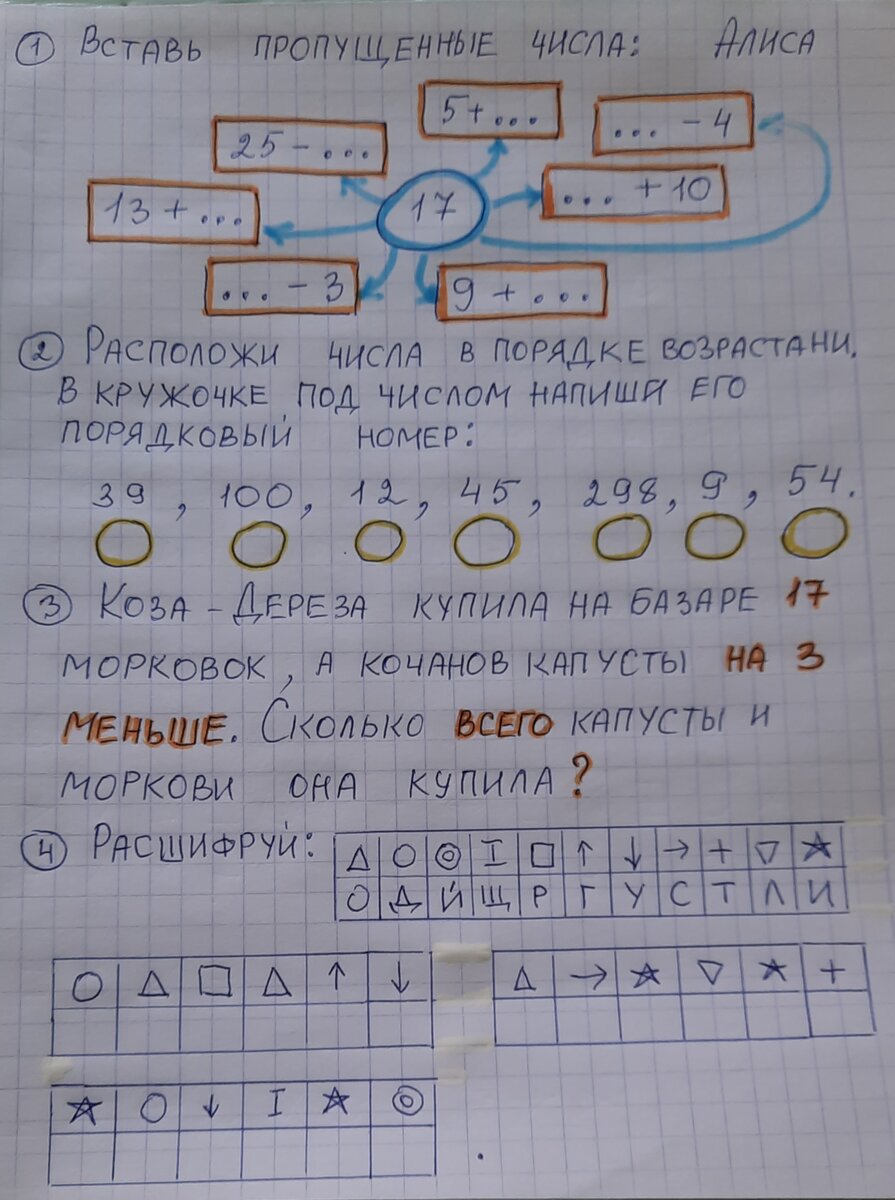 Решаем с Мишей (9 лет) и Алисой (6 лет).