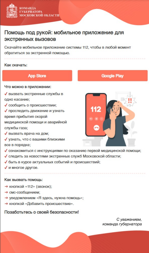 Скачать приложение можно в магазинах приложений по запросу «112 МО». App Store: https://apps.apple.com/ru/app/112-d0-о/id1230002615Google Play: https://play.google.com/store/apps/details?id=ru.mosreg.mo112