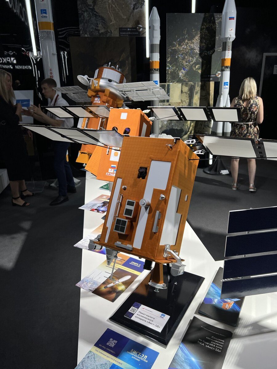 Ракетно-космический центр «Прогресс» (г. Самара) на объединённой экспозиции Роскосмоса в рамках форума «Армия-2022» показывает масштабные макеты своих космических аппаратов (КА).