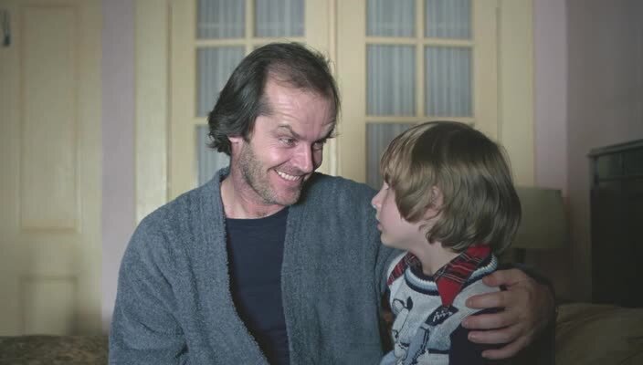 В киноклубе при показе фильма я выдвигала мнение,с которым никто не согласился, но в котором я убеждена. Герой фильма (не путаем с прототипом из книги) люто ненавидит жену и сына. Причем с самого начала, ещё до пагубного влияния отеля. Это не усталость от семьи. Это именно ненависть. Посмотрите, с каким наслаждением он рассказывает сыну - маленькому мальчику - про убийства и каннибализм. И как радуется при приеме на работу, поняв, что жену страшно напугает обстановка в отеле. Я бы по его воодушевленному виду сказала, что это стало одной из мотиваций принять предложение. Наряду с отрезанностью от мира. То есть, он вдохновлён возможностью в изоляции всласть поиздеваться над семьёй.