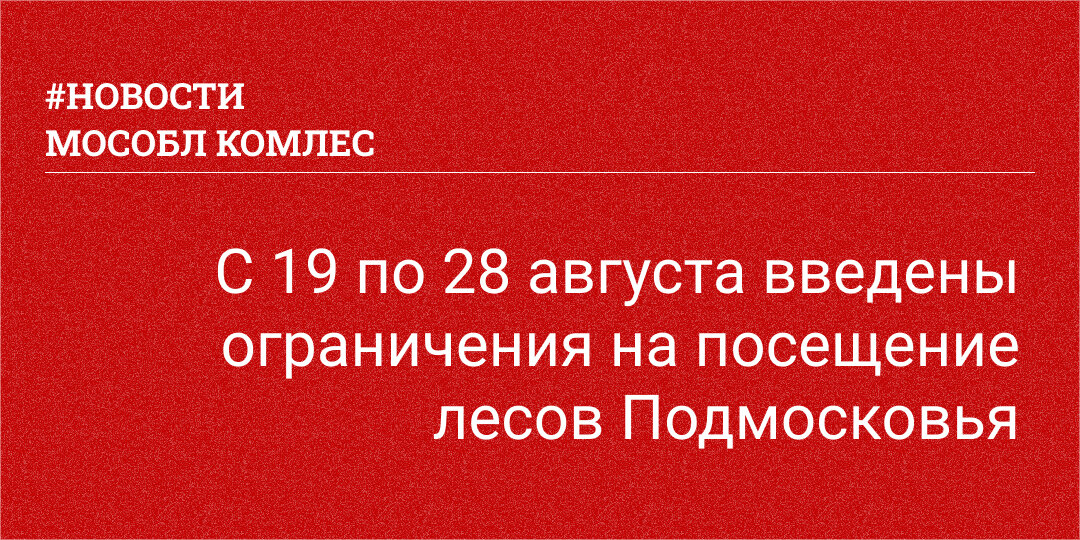 «С 19 по 28 августа 2022 года пребывание граждан и въезд транспортных средств в леса, расположенные на территории земель лесного фонда в границах Московской области, ограничены. Просим жителей и гостей региона воздержаться от посещения лесов! Доступ в леса ограничен»,- сказал зампредседателя Правительства Московской области Георгий Филимонов (https://t.me/filimonov_official/756). Он уточнил, что эта мера обусловлена осложнением пожарной обстановки в лесах - установлением на территории земель лесного фонда Подмосковья высокого (IV) класса пожарной опасности и отсутствием улучшения пожароопасной обстановки в лесах в ближайшие дни по данным прогноза Гидрометцентра России. «Мы вынуждены усилить меры для снижения рисков возгораний в лесах. Ограничения, введенные на прошлой неделе только на востоке области теперь будут действовать на территории всех лесов Подмосковья и продлены до 28 августа. Только с начала этой недели лесными пожарными ликвидировано 14 возгораний, 7 из которых произошли 1