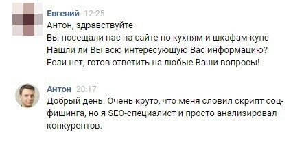 Вся полученная информация сохраняется в базе, и сервис продает ее владельцу или вебмастеру, установившему код. По ней можно найти человека, который просматривал страничку. Потом обычно его отыскивают в соцсети, и предлагают свою услугу. Сказать, что это неожиданно – не сказать ничего.