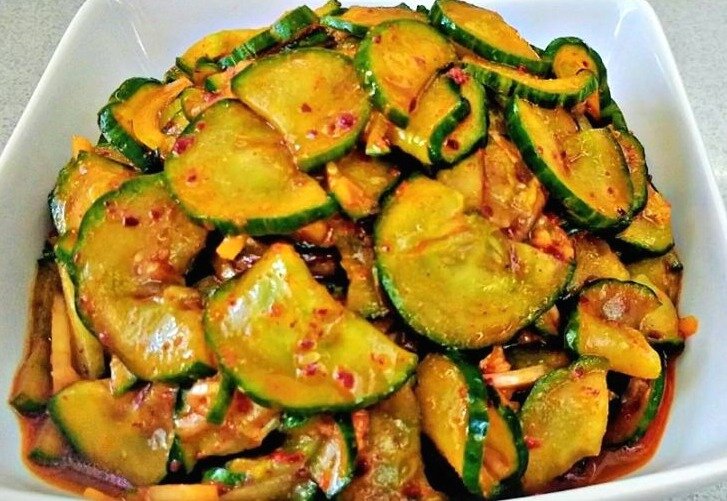 В отличие от морковки🥕 по-корейски, этот рецепт мало кто пробовал. Если на грядке подоспели огурцы, а обычный салат надоел, то приготовьте огурцы по-корейски. Приготовление:👨🍳 1. Огурцы нарежьте кружочками и посолите. 2. Возьмите миску с крышкой или контейнер, поместите туда огурцы и потрясите несколько секунд. Это нужно для того, чтобы огурцы пустили сок. 3. Пока огурцы🥒 просаливаются, приготовим соус. Именно в нем весь секрет. Смешайте соевый соус, кунжутное масло и рисовый уксус. Добавьте кунжут, хлопья чили и чили перец. Не пугайтесь "заморских" названий соусов и ингредиентов. Все они легкодоступны в обычном супермаркете. Кунжут и перец можно также найти на овощном рынке в отделе с орехами и сухофруктами. 4. После того как соус готов, добавляем его к огурцам. Посыпаем порубленным зеленым луком и закрыв крышкой еще раз встряхиваем огурцы. Все готово. Снимайте крышку и пробуйте. Что потребуется:📌 Если у вас есть в огороде не только огурцы, но и кабачки можно приготовить