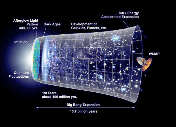 Рождение Вселенной могло начаться с того, что называют Большим взрывом. Этот гигантский взрыв чистой энергии начался примерно 13,4 миллиарда лет назад. На изображении выше показано краткое объяснение временных рамок, связанных с расширением Вселенной после Большого взрыва. Не было никакого объяснения того, откуда взялась энергия и как начался взрыв. Все, что мы знаем, это то, что произошло после.