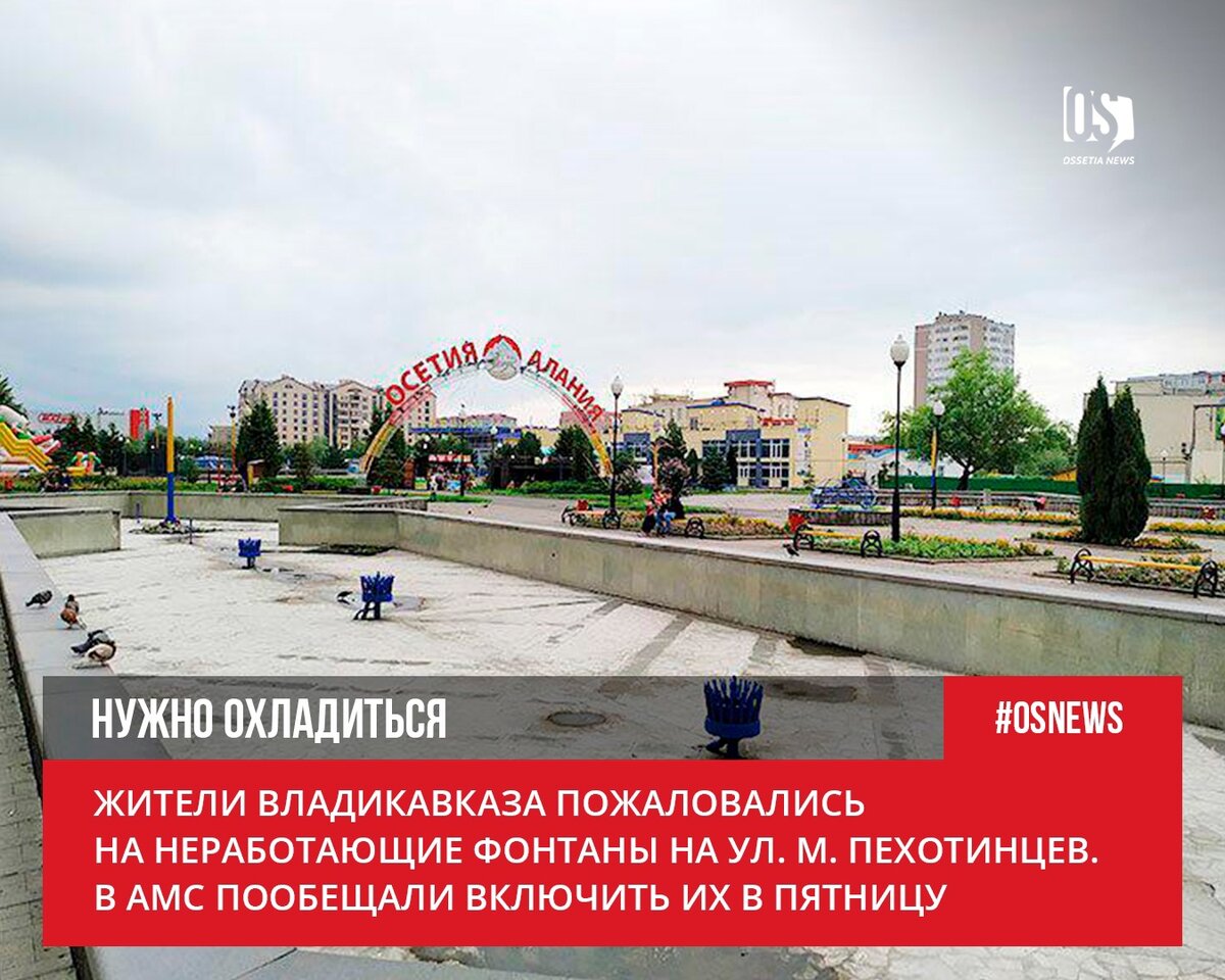 Видео в редакцию Ossetia News прислали местные жители. Их возмутило, что в жару фонтаны на ул. М. Пехотинцев не работают. По словам горожан, они не функционируют уже второй день, а «шары» не включены уже больше недели. «Почему в Осетии всё не как у других республик, столько лет не работали, наконец, отремонтировали, и опять те же проблемы. Звонили в администрацию, сказали поломка, но никто этой поломкой не занимается. Когда-нибудь у нас в республике порядок будет?» – возмутились люди.