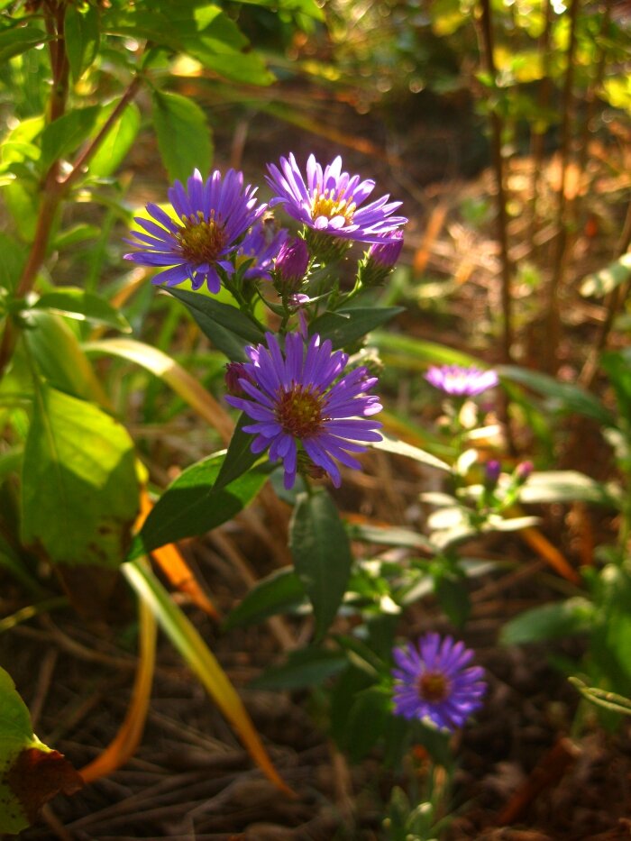 К примеру, в синем цветнике прошлой осенью я посадила вдоль дорожки 4 куста бордюрной астры, 2 из них - новоприобретенные. Одна и вовсе попала ко мне случайно: затесалась небольшим стебельком среди корней другого купленного растения. Она выглядела настоящей малышкой, потому я и посадила ее среди прочих бордюрок.