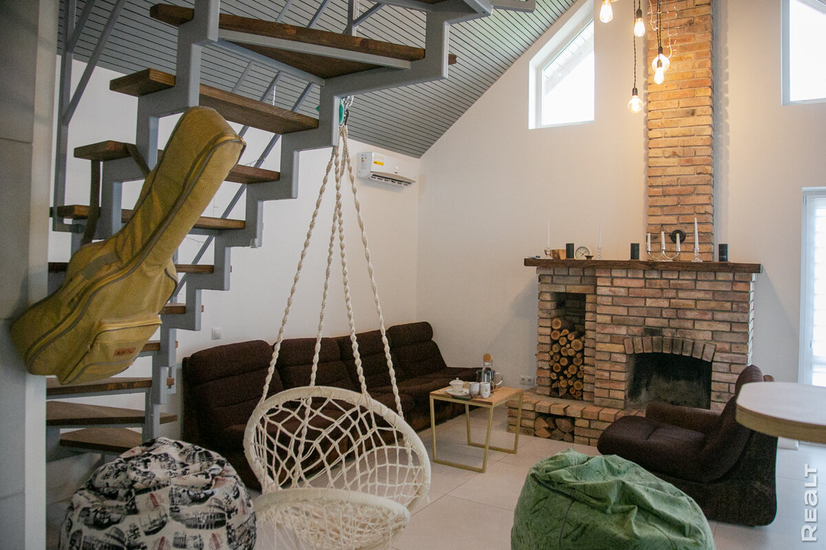 Андрей начал строить собственный дом еще несколько лет назад. Тогда молодой человек мечтал обустроить холостяцкий уголок, где будет много места для большой компании друзей. Жизнь его планы чуть подкорректировала — в готовые квадраты Андрей заехал уже с женой Инной. Ребята выиграли сплит-систему Zanussi в конкурсе от 21vek.by и Realt. Мы поехали в Брест, чтобы оценить дом победителей и понаблюдать за установкой кондиционера мастерами онлайн-гипермаркета 21vek.by. Рассказываем историю дома с необычной отделкой, который обошелся Андрею всего в 18 тысяч долларов. Как он это сделал? «Без друзей я бы не смог построить дом так дешево» Молодая семья живет недалеко от центра Бреста. Андрей построил свой дом на дедовском участке, а точнее, на месте сарая. Он начал возводить его в 2017 году, когда еще был холостяком, хотел сделать место, где можно собираться с друзьями и устраивать тусовки. А вот заканчивал внутреннюю отделку уже вместе с Инной. Ребята торопились, так как хотели после свадьбы сра