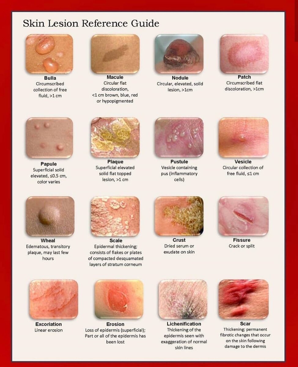 Сначала научимся отличать виды сыпи друг от друга и узнаем название элементов сыпи, наиболее важных для нас в этом случае.