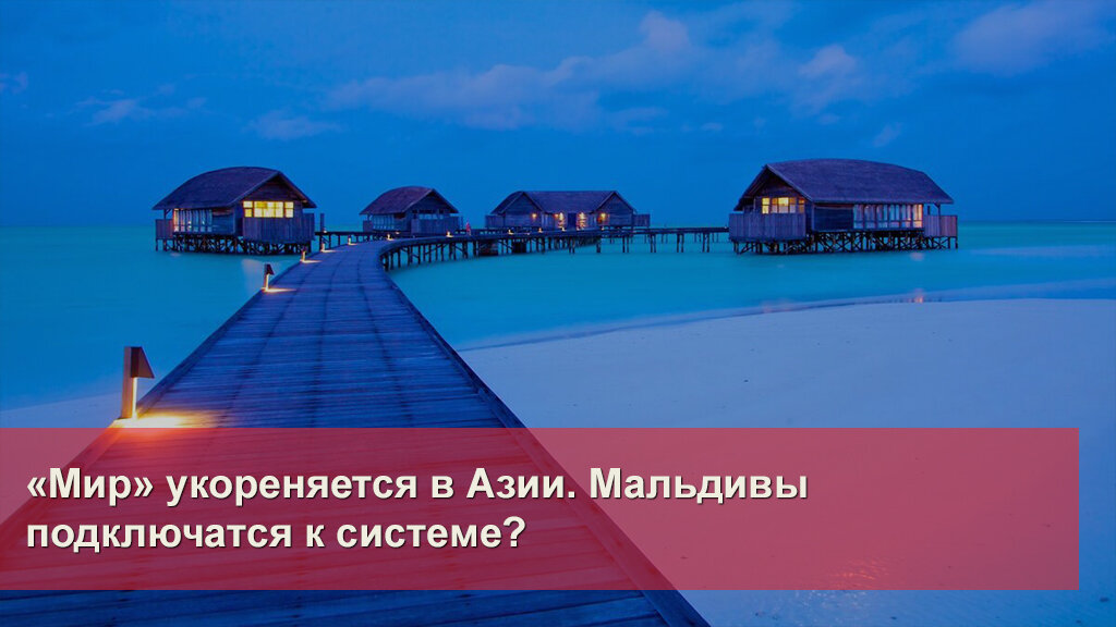 Мальдивской Республике предложили реализовать приём «мировых» карт на территории государства. Сообщается, что власти получали предложение от России ещё в апреле, а после — в июне этого года. И даже сегодня о результатах говорить всё ещё рано, заявила мальдивская сторона. В азиатском регионе карты российской системы уже принимают Вьетнам и Южная Корея. В остальном мире — Турция, Армения, Узбекистан, Беларусь, Киргизия, Таджикистан, Казахстан, Южная Осетия и Абхазия. Подробнее: https://ib-bank.ru/bisjournal/news/17719