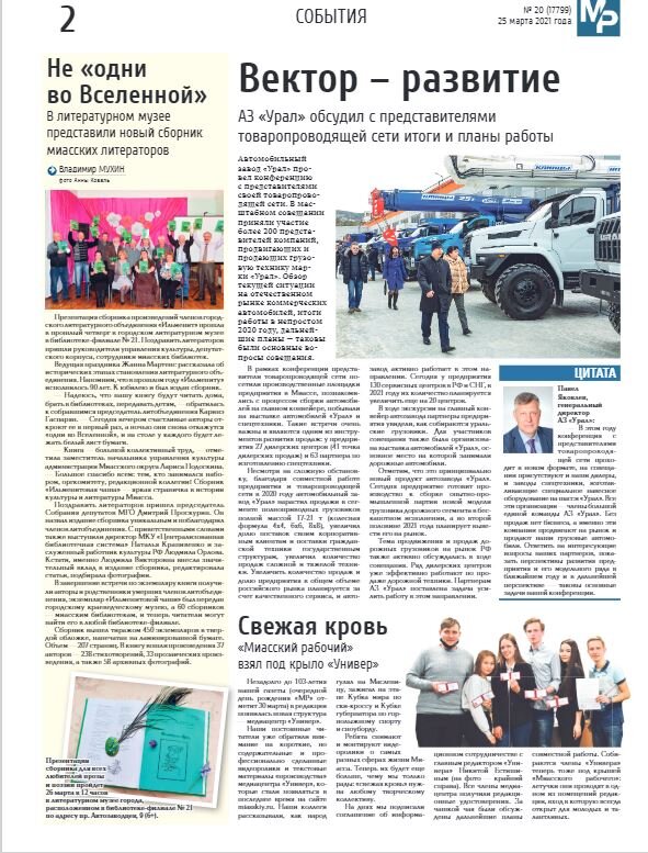 Миасский Рабочий. Выпуск 20 от 25 марта 2021