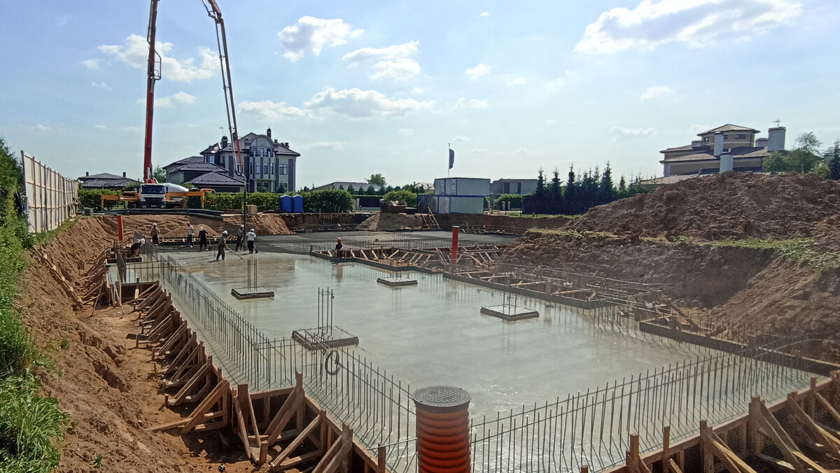 Работы на объекте в КП «Миллениум Парк» идут полным ходом. Здесь ведется строительство двухэтажного дома по проекту архитектурного бюро «Архрешение». В июле: — Произведена выемка растительного слоя из пятна застройки. — Выполнены работы по разработке котлована в отвал с помощью экскаватора Deere с перевозкой грунта самосвалом по территории объекта. — Организован временный дренаж для откачки воды из котлована, выполнена ручная доработка дна котлована. — Выполнена бетонная подготовка под фундамент, подготовлена поверхность подбетонки для оклеечной гидроизоляции, которая позволит защитить фундамент от капиллярного подъема влаги. В августе выполнено устройство гидроизоляции. К настоящему моменту — закончено армирование фундаментной плиты, установлена опалубка и начато бетонирование. Для работ используются материалы от нашего партнера — компании @unimart24: — Материалы для гидроизоляции @technonicol — Геотекстиль Typar — Инструменты Stayer Смотрите ⏩ в карусели, как выглядит строительная п