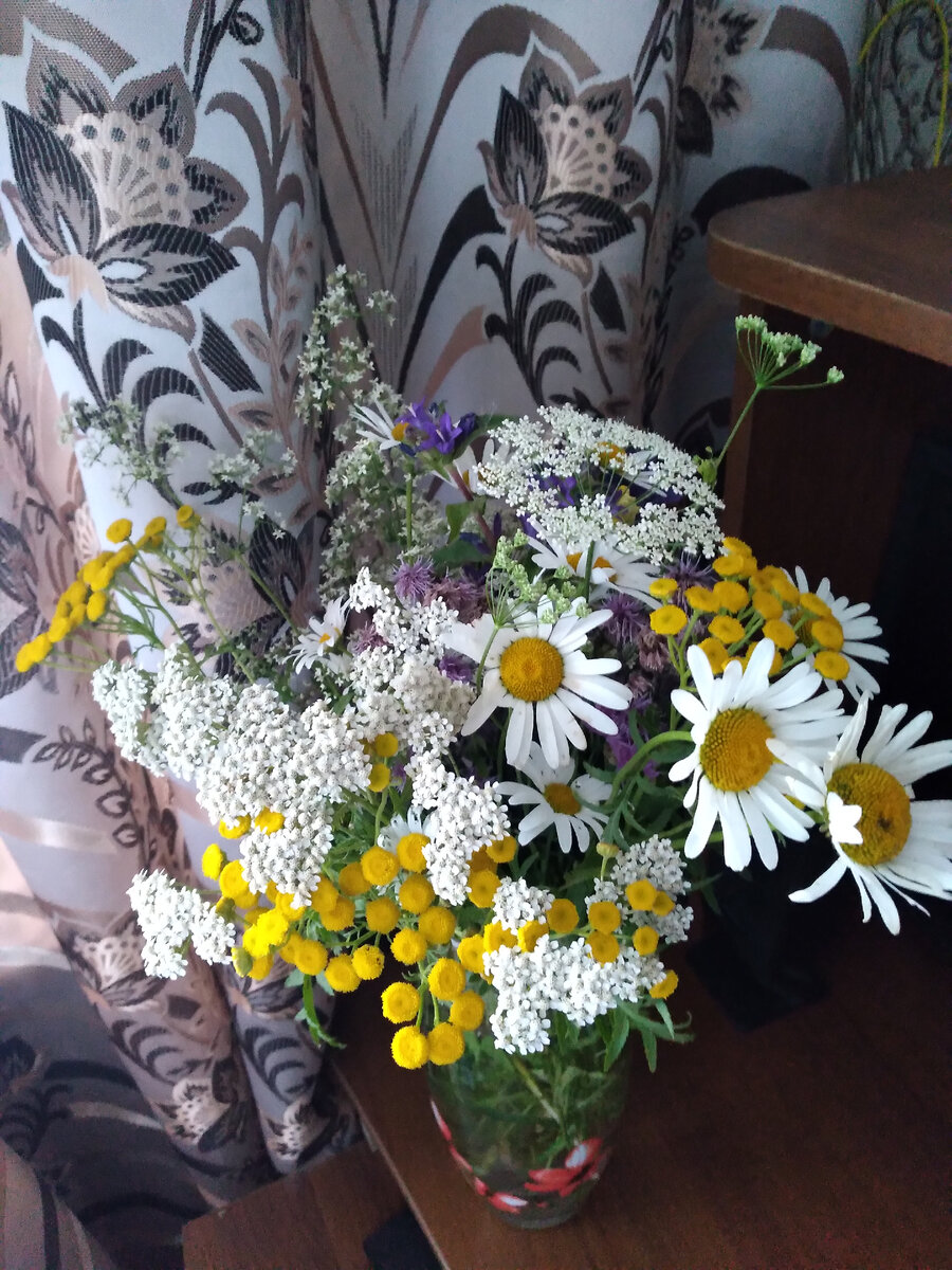 Не дари мне цветов покупных, собери мне букет полевых, чтобы верила я, чтобы чувствовал ты, это наши цветы, только наши цветы.... Со словами из этой песни, я ехала домой с пробежки. День прошёл хорошо, опять почти ничего не делала, отдыхаю перед работой, как следует))) На завтрак были несколько шпрот с кусочком черного хлеба, чай сладкий с лимоном и с диетическим пирожным. На обед - плов с молоком, вечером - вареные яйца. Цветочков нарвала на валу, среди такой красоты я и бегаю. Глаз радуется и вся комната наполнилась тонким, нежным ароматом. Всем отличного настроения ❤️