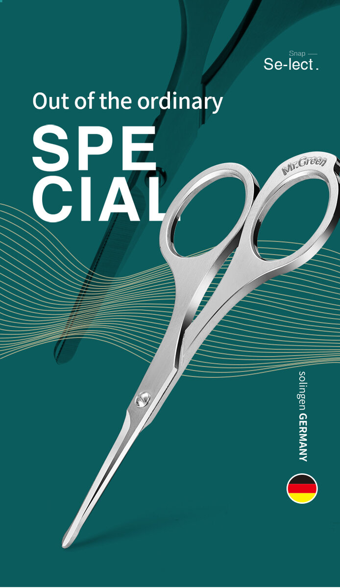 Как заявляет разработчик, они сделаны с безопасными закругленными концами - для подстригания волос на бороде, усов, в области носовых пазух и ушных раковин. По заявлению разработчика, сталь которая используется для изготовления этих ножниц, изготавливается по такой-же схеме, как и для изделий немецкой фирмы Solingen.